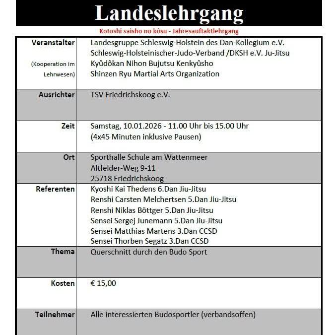Am 11.01.2025 fand der erste Landeslehrgang 2025 der Kooperationsgemeinschaft Ju Jitsu in Friedrichskoog statt.